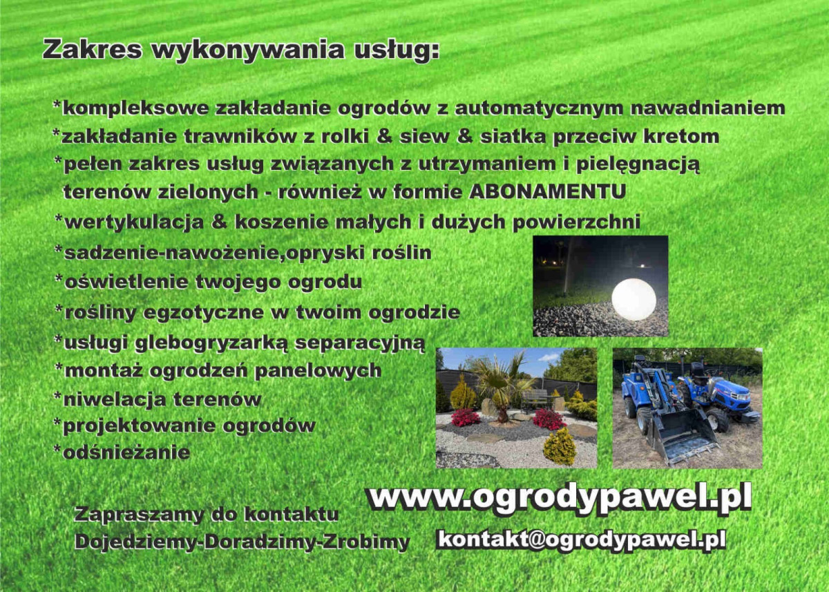 * pełen zakres usług związanych z utrzymaniem i pielęgnacją ogrodu