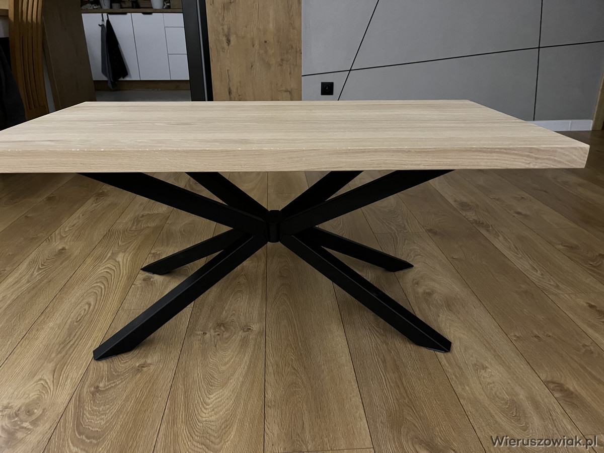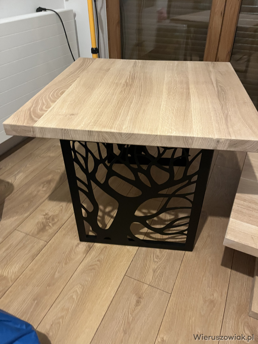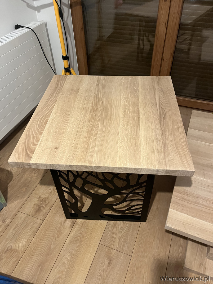 Stolik jest nowy nie używany są dwa rodzaje nóg do wyboru blat dębowy surowy do pomalowania lub na zlecenie klienta pomaluje olejem trudno ścieralnym lub lakierem.