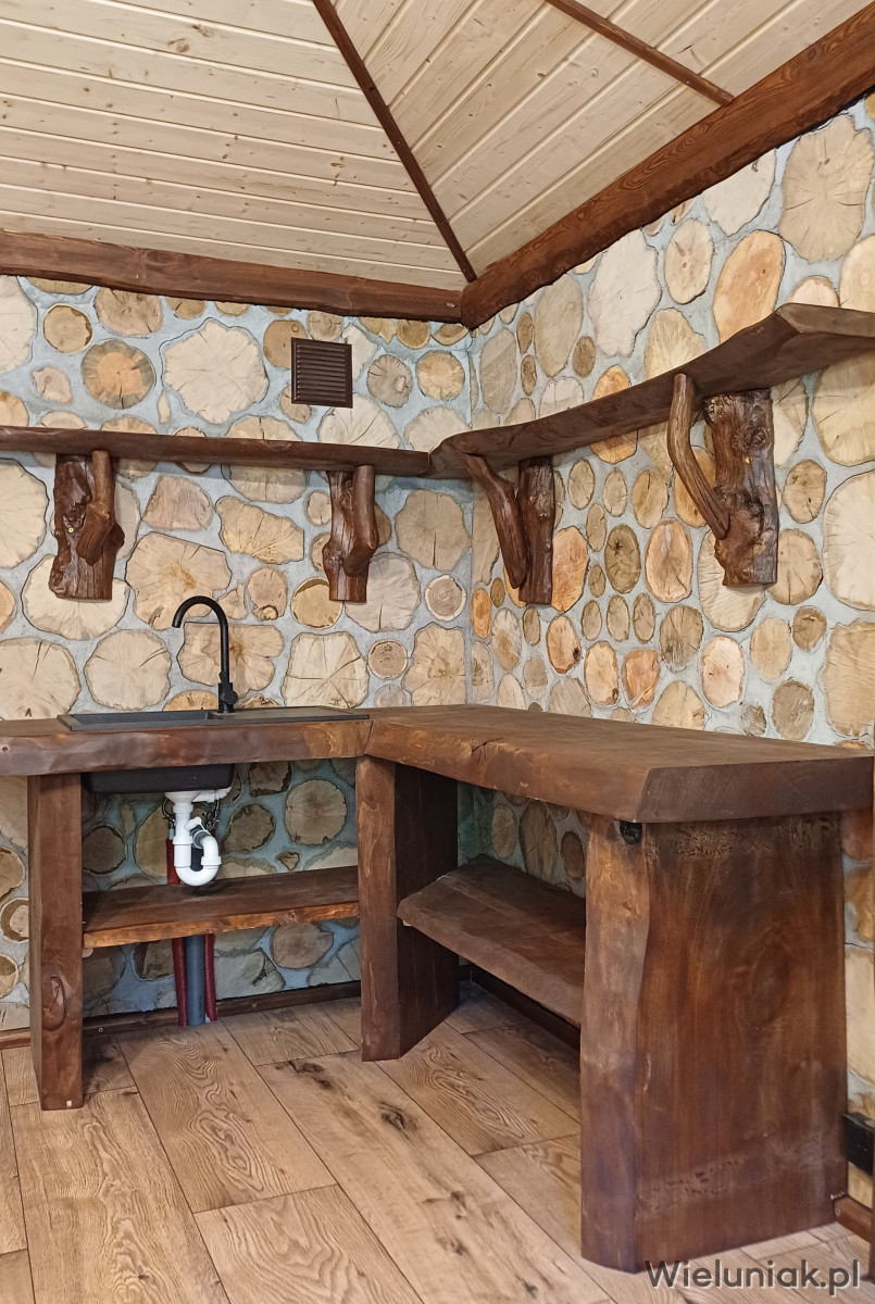 - oświetlenia; żyrandol z bali okrągłych = 3 klinkiety ,