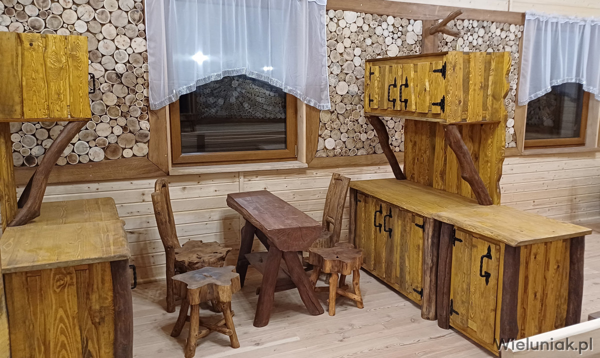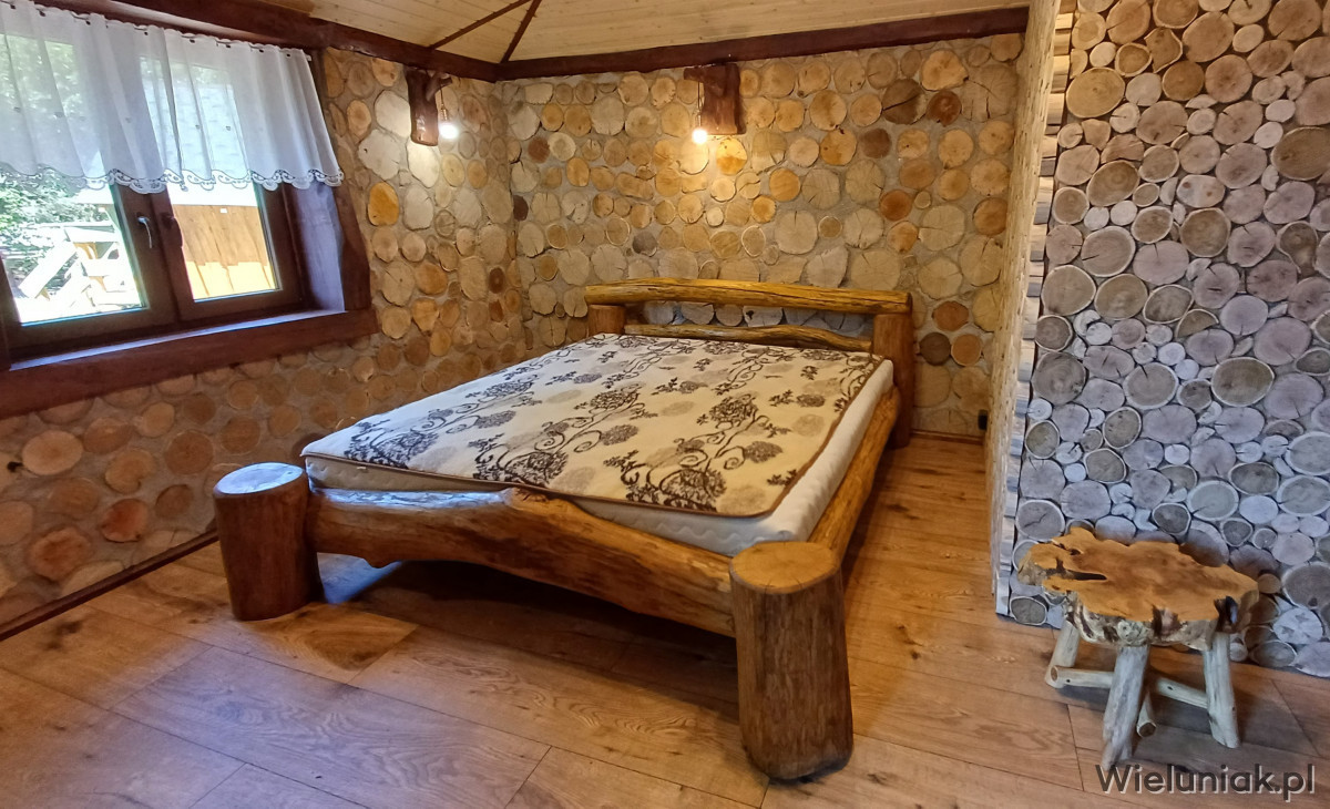 - łóżka o wym. 180 x 200 cm z bali.