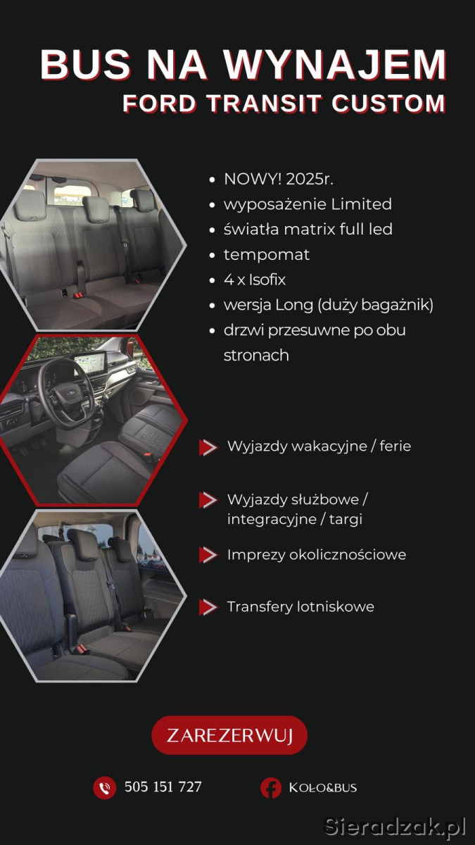 Tagi: wynajem busa, bus 9 osobowy, wynajem busa 9 osobowego, ford transit custom, Ford Transit Custom, bus osobowy, wynajem auta 9 osób, wypożyczalnia busów, bus na wakacje, bus na wyjazd, bus na wesele, bus na lotnisko, transport osób, przewóz osób, komfortowy bus, klimatyzacja, duży bagażnik, wynajem krótkoterminowy, wynajem długoterminowy, Sieradz, Wągłczew, Wróblew, Błaszki, Kalisz, Złoczew, łódzkie, województwo łódzkie, okolice Sieradza, bus na delegację, bus firmowy jak vito vivaro trafic transporter