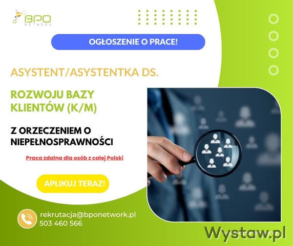 Asystent / Asystentka ds. Rozwoju Bazy Klientów (K/M) z orzeczeniem o niepełnosprawności